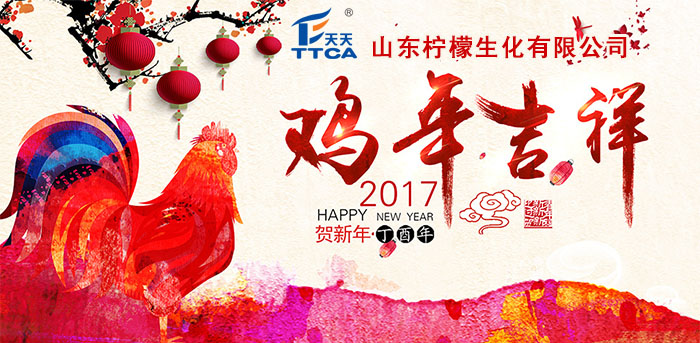 值此新春佳節來臨之際,山東檸檬生化有限公司全體員工恭祝您:雞年發大財行大運!身體健康,萬事如意!一年伊始,福壽即來。